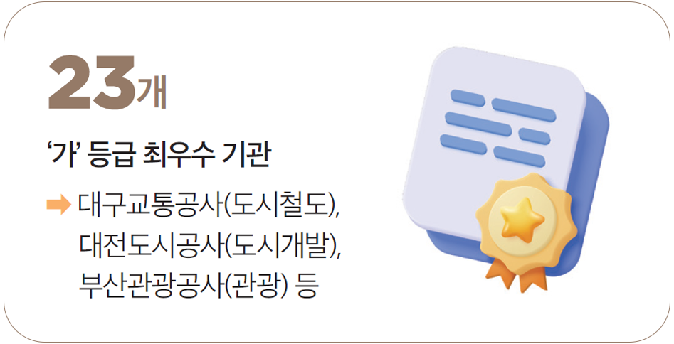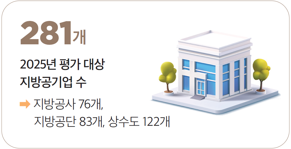 행정안전부(이하 행안부)가 전국 281개 지방공기업(지방공사 76, 지방공단 83, 상수도 122)에 대한 2025년(’24년 실적 기준) 경영평가 결과를 발표했다. 이번 평가는 공공성·효율성 강화에 긍정적 성과가 있었으나, 안전·환경 분야 관리 미흡 등 보완이 필요한 과제도 드러났다. 특히 23개 기관이 최상위 ‘가’ 등급을 받았으며, 반대로 7개 기관은 경영진단 대상으로 지정돼 집중 관리된다. 행안부는 평가결과를 기관별 성과급 차등 지급과 경영 개선 명령에 반영하고, 지방공기업의 혁신과 책무성을 강화해 나갈 계획이다.