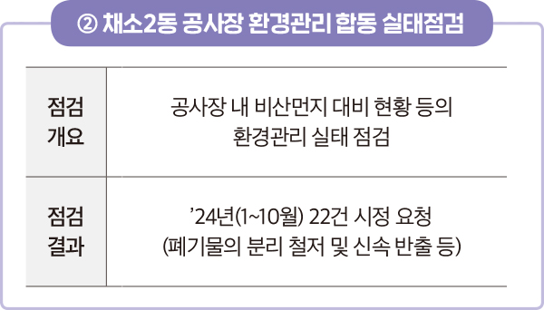 표 4. 채소2동 공사장 미세먼지 관리 및 성과