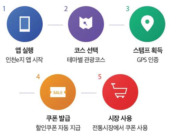‘인천e지’ 앱으로 시장과 주변 관광지를 엮어 ‘방문 → 체험 → 구매’의 선순환을 만들었습니다. 16개 시장, 15개 코스로 구성된 투어는 관광객에게 보물찾기 같은 새로운 재미를 선사했습니다.