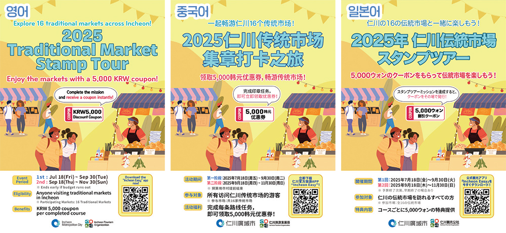 ‘인천e지’는 한·영·중·일 4개 국어를 지원해 외국인 관광객도 손쉽게 스탬프 투어에 참여할 수 있습니다. 약 50명의 외국인이 참여해 인천 K-마켓의 매력을 직접 체험했습니다.
