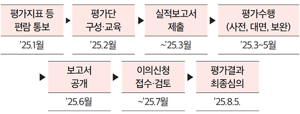 경영평가는 기본적으로 행정안전부의 「지방공기업 경영평가 실시계획」과 「경영평가편람」에 기초한다. 2025년 평가대상 기관은 총 281개로 광역 55개, 기초 226개로, 이 중 168개 기관의 경영평가는 지방공기업평가원이 행안부의 위탁을 받아 수행하고, 113개 기초 상수도의 경영평가는 광역 지자체(지방연구원)에서 수행한다. 특히 올해부터 기초 시설공사·공단은 설립목적과 특성을 반영하여 지방공사와 지방공단이 분리·평가되었다. 경영평가는 사전 공개한 평가지표에 따라 경영평가단이 평가 후 평가보고서의 공개 및 이의신청 과정을 거쳐 지방공기업정책위원회 심의를 통해 평가결과(평가등급 등)가 결정되었다.